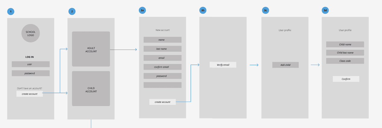 La mayoría de las instituciones contaban con un sistema más elaborado a través del cual el maestro podía otorgar ingresos a las plataformas, o en las aulas físicas había códigos para los alumnos. La institución para la que realizamos el trabajo se optó por un sistema más simple similar al de Pearson en el que primero se debía registrar el padre/madre o tutor e incorporar los datos del menor para que luego pueda usar la cuenta.