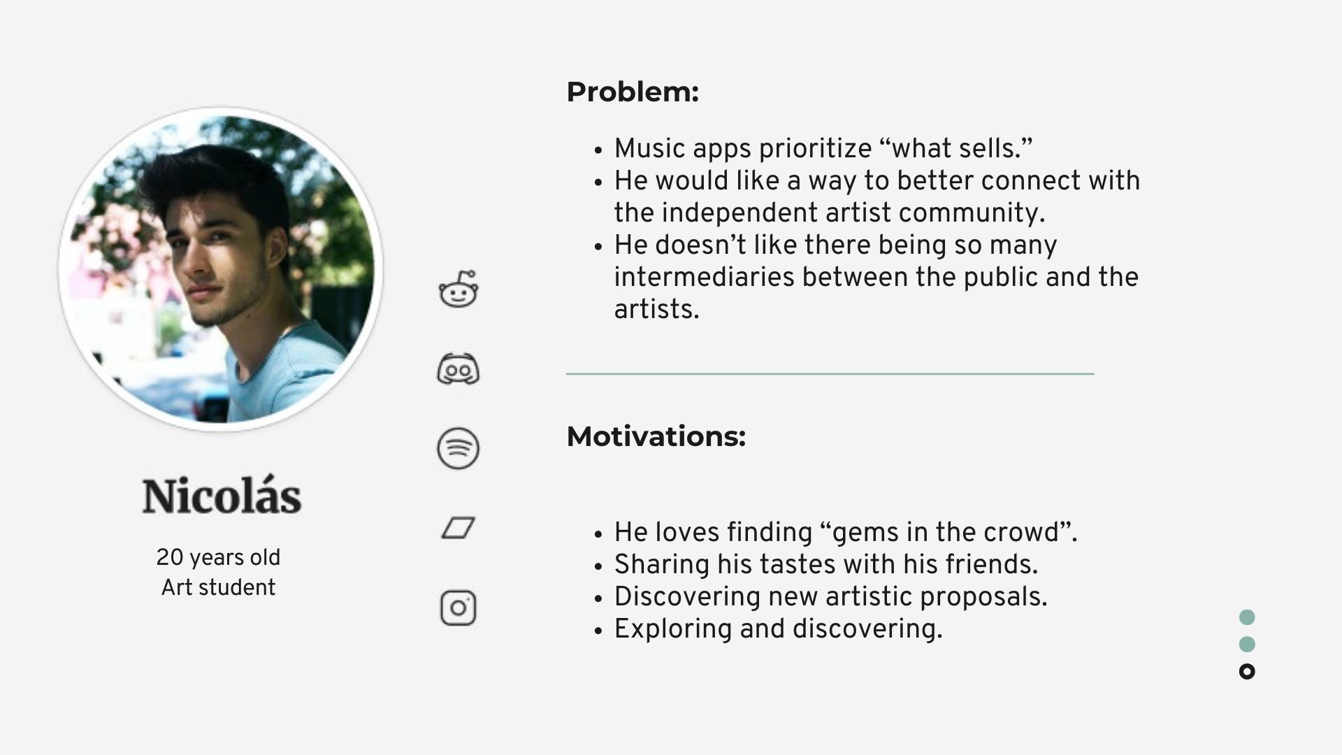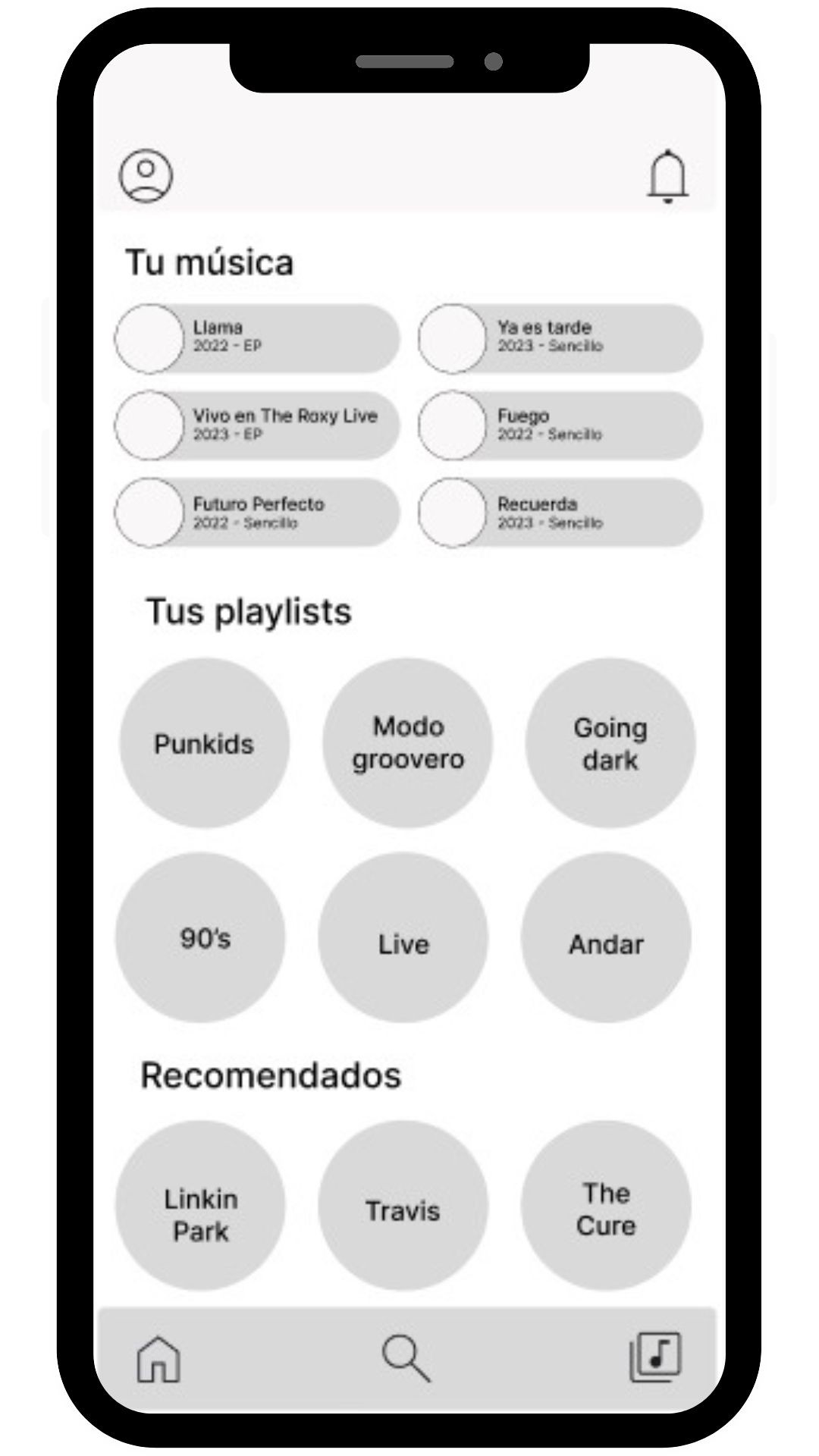 Each artist or band will have a profile where their information and musical productions will be uploaded.